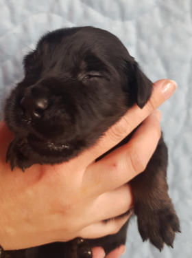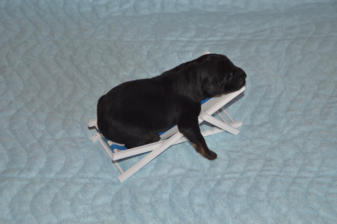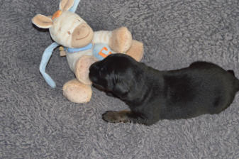 DallasUm 14:49 Uhr folgte dem Schema entsprechend ein schwarzmarkener Rüde, auf dessen Kennzeichnung durch Halsband wir ebenfalls verzichten. Sein Geburtsgewicht lag bei 478 Gramm. Wir haben ihn Dallas getauft, seine Beinmarken sind schon schön zu erkennen. In der Welpenstube