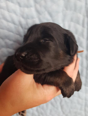 können wir nicht anbieten, aber einen schönen schwarzmarkenen Rüden. Er kam um 15:21 Uhr mit 478 Gramm zur Welt.